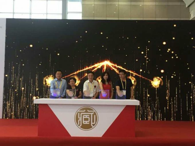 中国收藏家协会会长罗伯健(左三)、中国陶瓷工业协会副理事长付伟杰(左二)等,在本次文化展启动仪式
